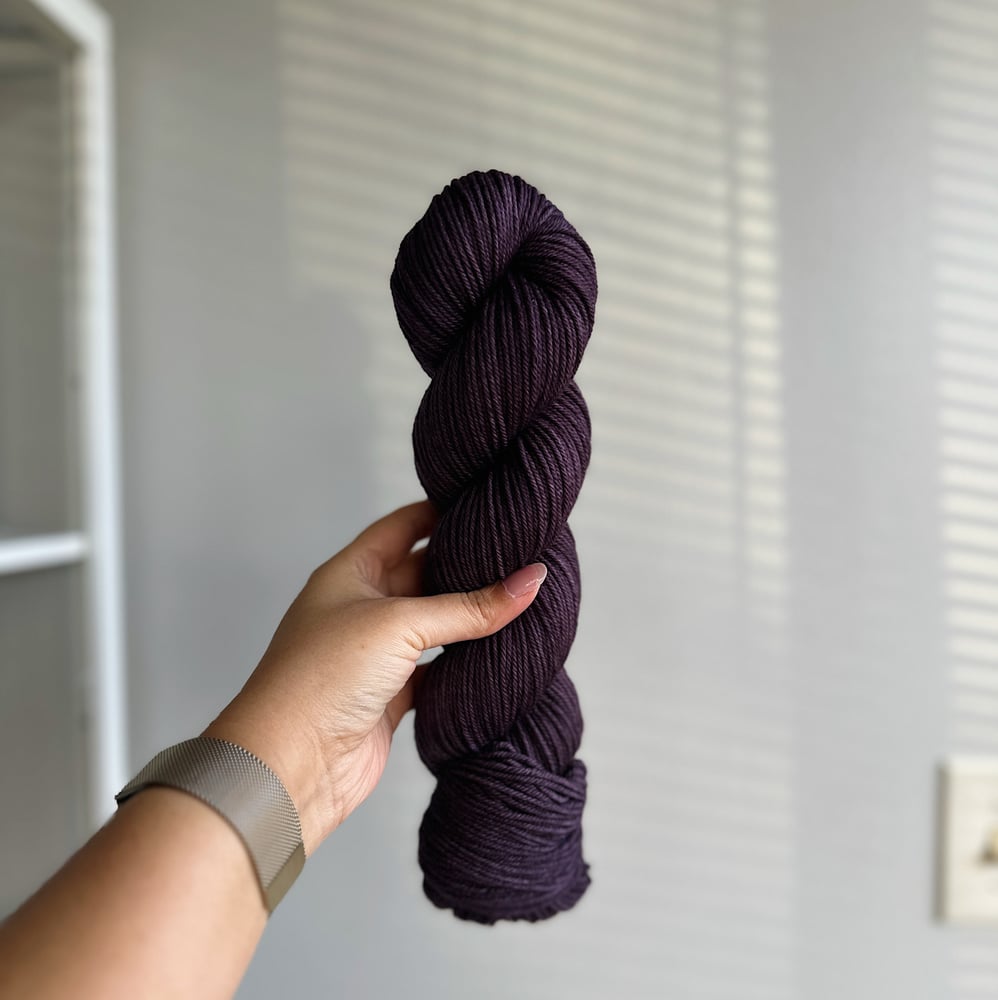 DK weight, 4 ply. 100% superwash merino. 250 yards/ 115 grams.