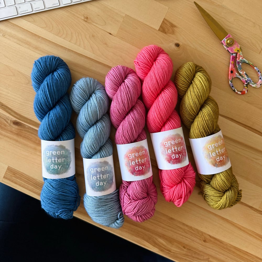 DK weight, 4 ply. 100% superwash merino. 250 yards/ 115 grams.